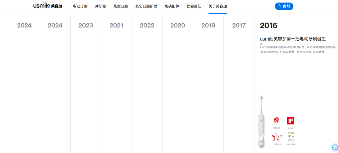 Usmile官方涌现,2016年usmile第一把电动牙刷出身,现在公司还领有冲牙器、牙膏、刷头配件等居品。天眼查涌现,广州星际悦动股份有限公司开导于2015年,2019年公司获取钟鼎本钱领投,宝捷会基金跟投的计谋融资,2020年获取高瓴创投领投,源码本钱跟投的股权融资,但金额均未表露。